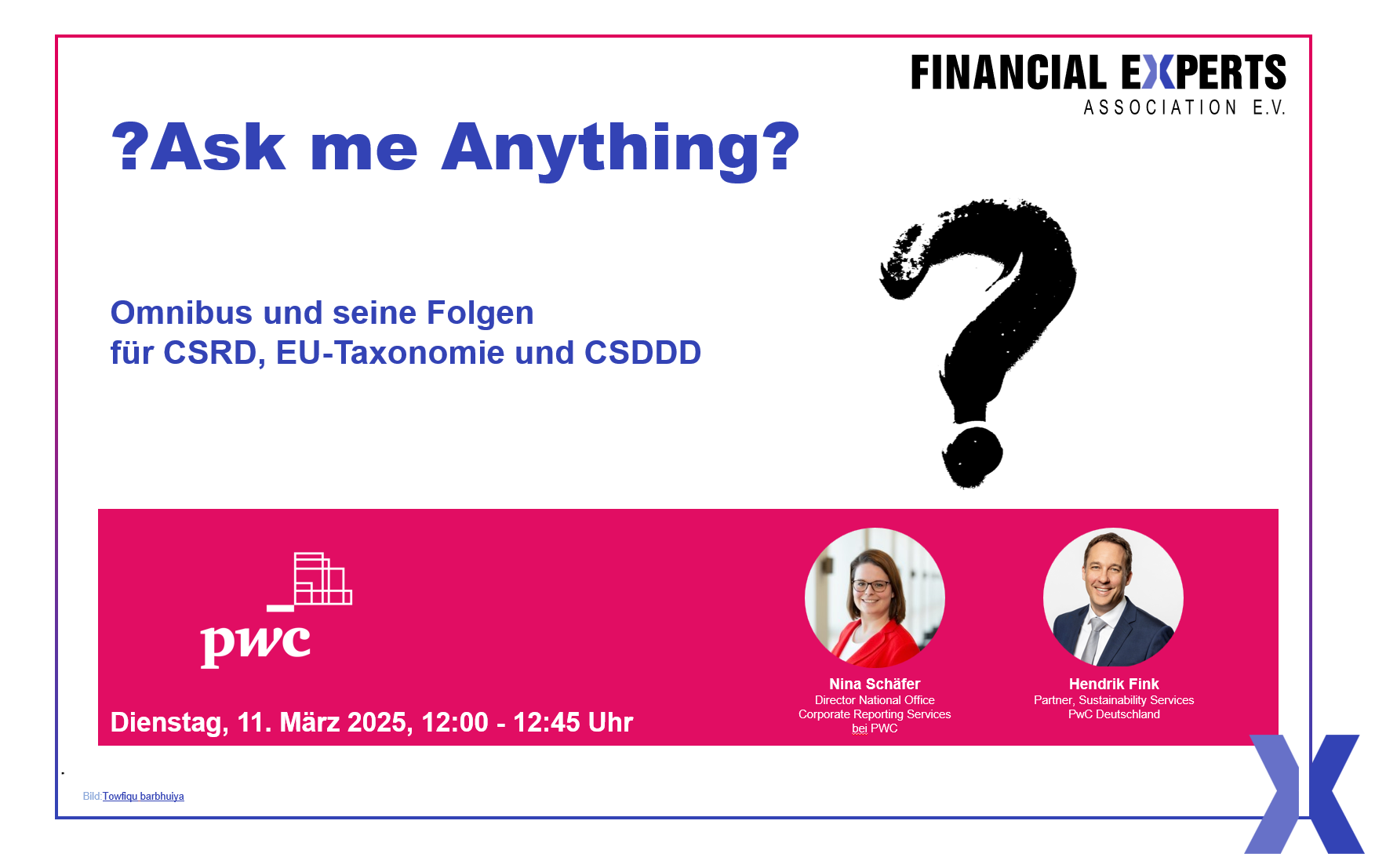 „Omnibus und seine Folgen für CSRD, EU-Taxonomie und CSDDD“ am 11. März 2025 von 12:00 – 12:45 Uhr.