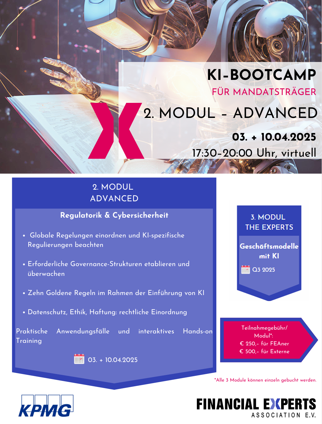 Unsere Geschäftsstelle nimmt Ihre Anmeldungen bereits heute per E-Mail entgegen (geschaeftsstelle@financialexperts.eu).